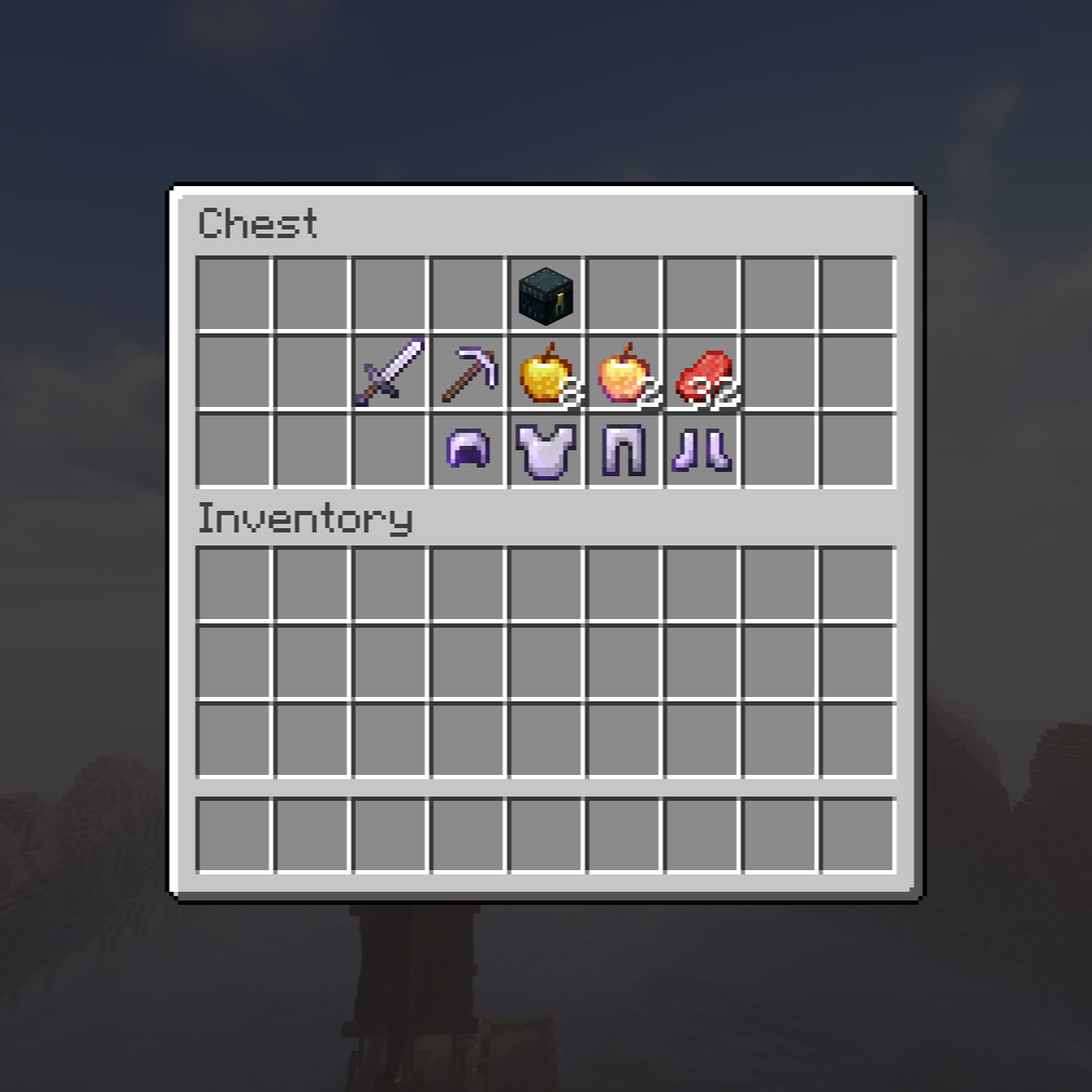 🍗 Mat og healing: 32 steak, 8 gull-epler, 2 enchanted gull-epler